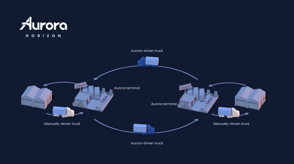 “…our customers will drop off and pick up their trailers at our terminals, which are positioned at major freight hubs along our launch lanes, and the Aurora Driver will take care of the long hauls.”