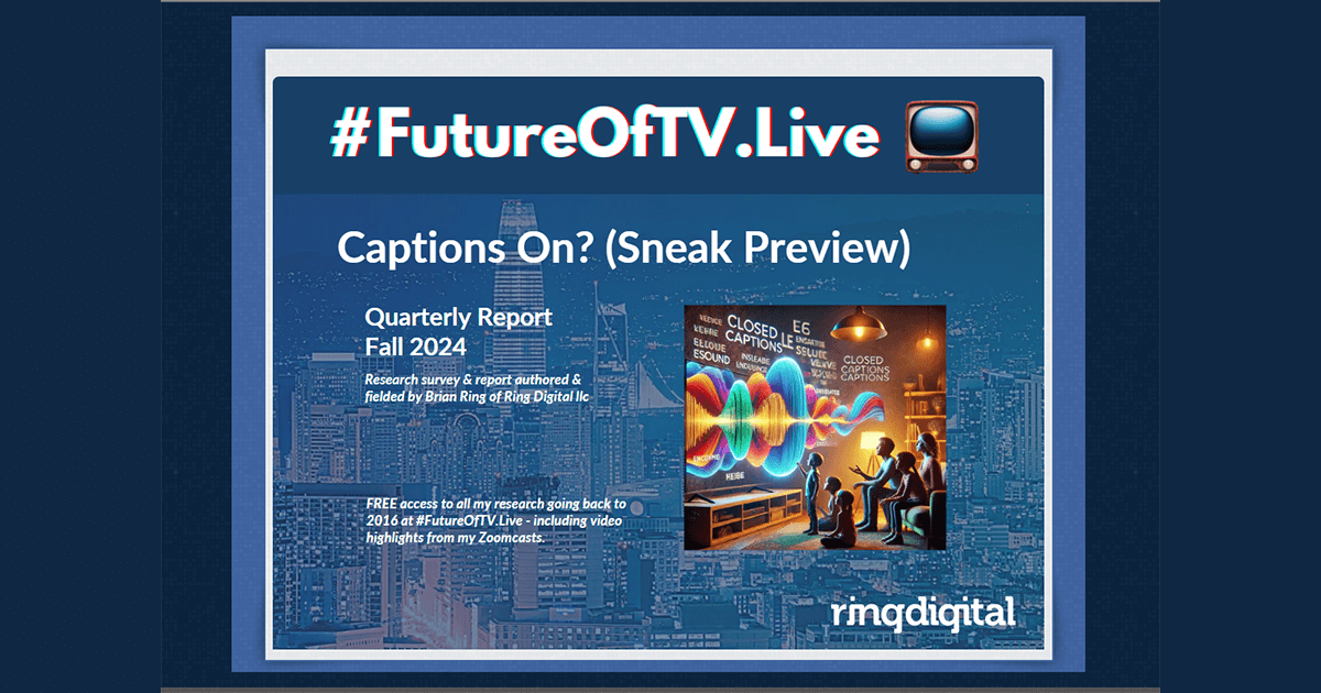 Ring Digital’s latest FutureOfTV.Live quarterly report included revealing survey data on the state of live captioning in the TV and streaming ecosystem. We’ll delve into the questions we asked and the survey’s findings here.