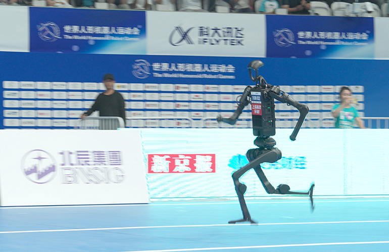 The Unitree H1 humanoid robot won four foot races at the inaugural robot games. | Credit: Unitree Robotics